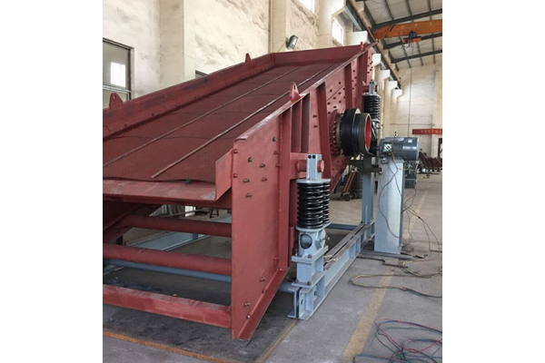 香蕉篩主要由篩箱、篩網、激振器、減振彈簧和下座架等組成。香蕉篩是由電動機和激振器作為振動源,激振器主要是由偏心軸、皮帶輪、軸承及軸承座等組成,激振器安裝在篩箱側板上,并由電動機通過三角皮帶或軟連接與其相連,